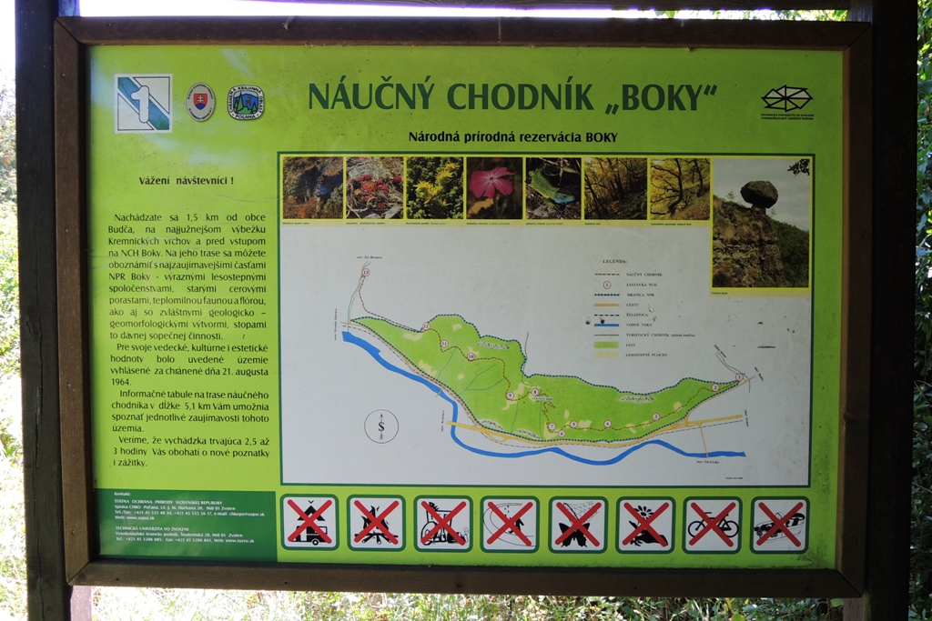 Cesta vedia po náučnom chodníku, ktorý sem tam spríjemňujú informačné tabule s popisom miestnej fauny a flóry. Vyšľapaný chodník je vačšinu času rovný, zvažujúci sa ale dolu svahom a tak sa pripravte že vaše členky dostanú zabrať.