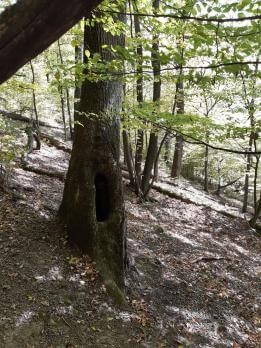 Cestu lemujú viac než 200 ročné duby s množstvom popadaných žaluďov všade naokolo, taktiež cestou vidím veľa jašteríc, ktoré sa vyhrievajú na lúčoch vrcholiaceho babieho leta. Blízko cieľa mojej cesty začína byť chodník kopcovitý, ale nie extrémne strmý, doplnený občasnou zákrutou. Po asi hodinke pohodovej chôdze sa predo mnou zjavuje silueta balvanu, ktorý vyzerá, že sa každú chvíľu zrúti dolu svahom. Človeka to až nabáda ku vtipným fotkám so skalou s priemerom 1,5 až 2 metre, ktorá je uložená na kúsku kameňa pod ňou. Nečudo teda, že medzi miestnymi ľuďmi koluje mnoho legiend o jej vzniku.